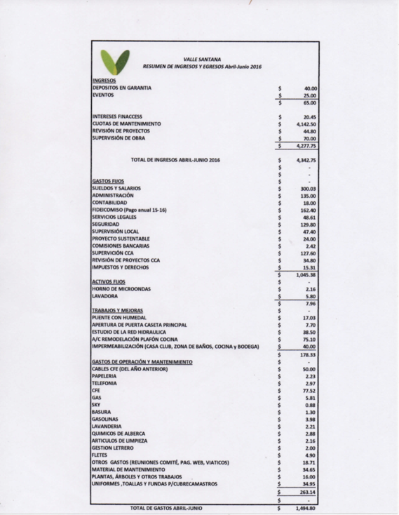 Ingresos y egresos Abril-Junio 2016